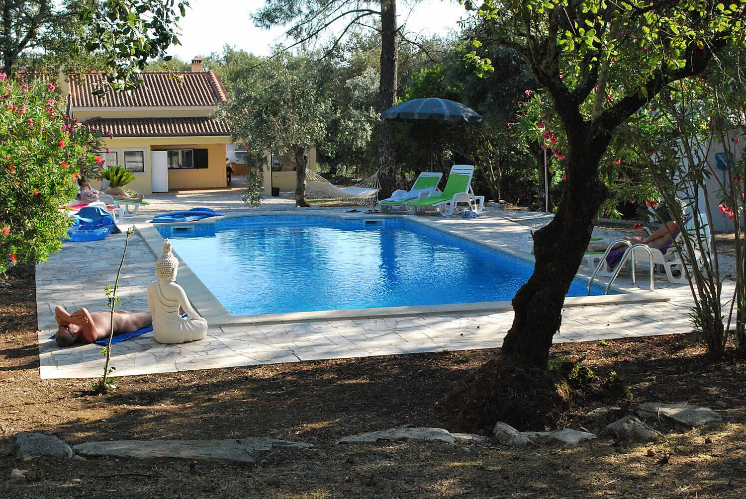 No nosso belo jardim com piscina, nós deixamos você aproveitar o clima ameno do sul. Isso também é possível durante a maior parte do ano sob um céu azul brilhante ou na sombra para os amantes.